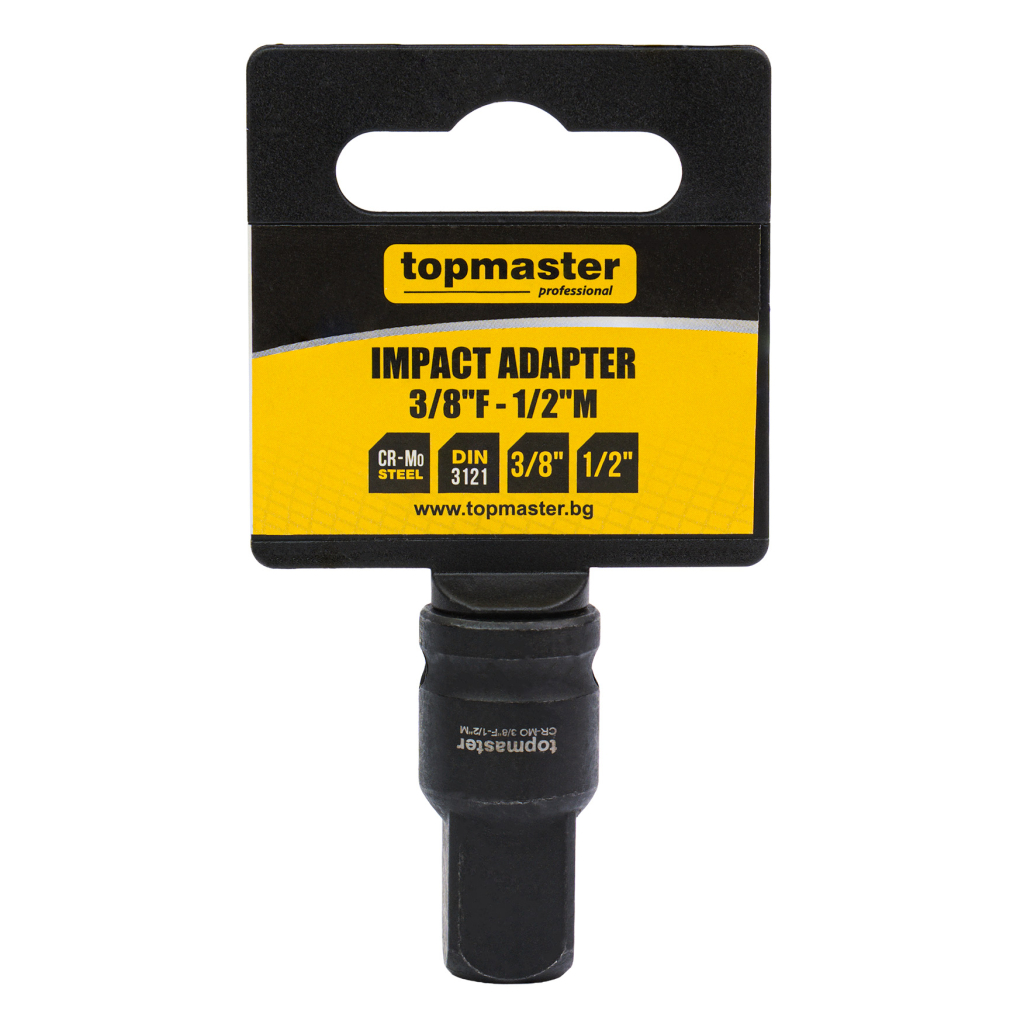 Ударният адаптер TMP 3/8F – 1/2M е предназначен за надеждно свързване на инструменти и вложки с различен присъединителен размер. Изработен е от висококачествена хром-молибденова (Cr-Mo) стомана, която осигурява висока якост, устойчивост на усукване и дълъг експлоатационен живот при интензивна работа.
