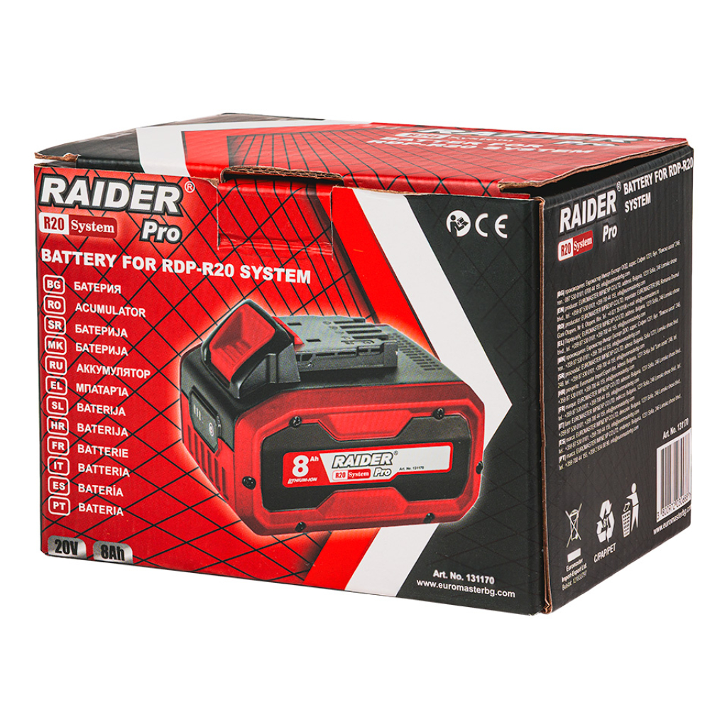 R20 Батерия 20V 8Ah за серията RDP-R20 System е новата висококапацитетна батерия на RAIDER R20, проектирана за професионално приложение и максимално натоварване.