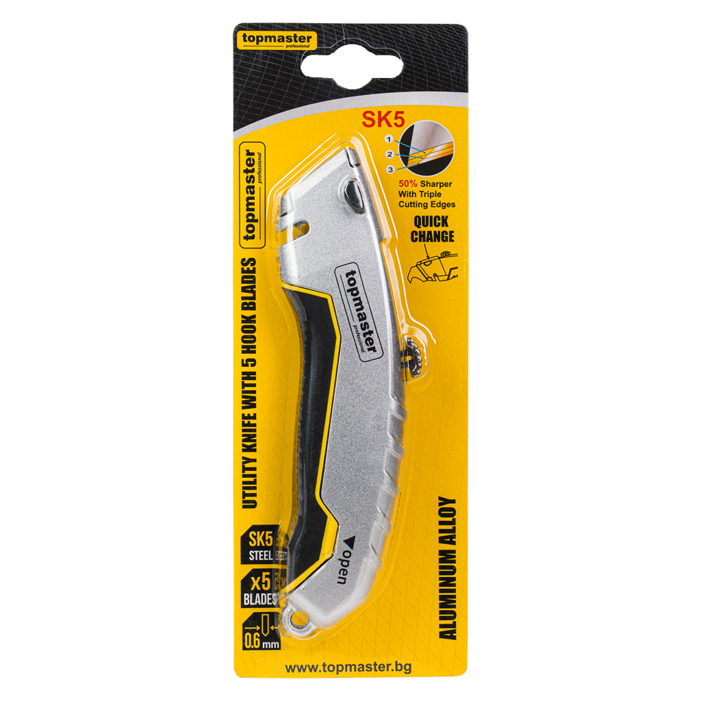 Макетният нож TMP с кукообразно острие е специализиран инструмент, създаден за безопасно рязане на материали, които изискват контрол и ограничаване на нежелани прорези