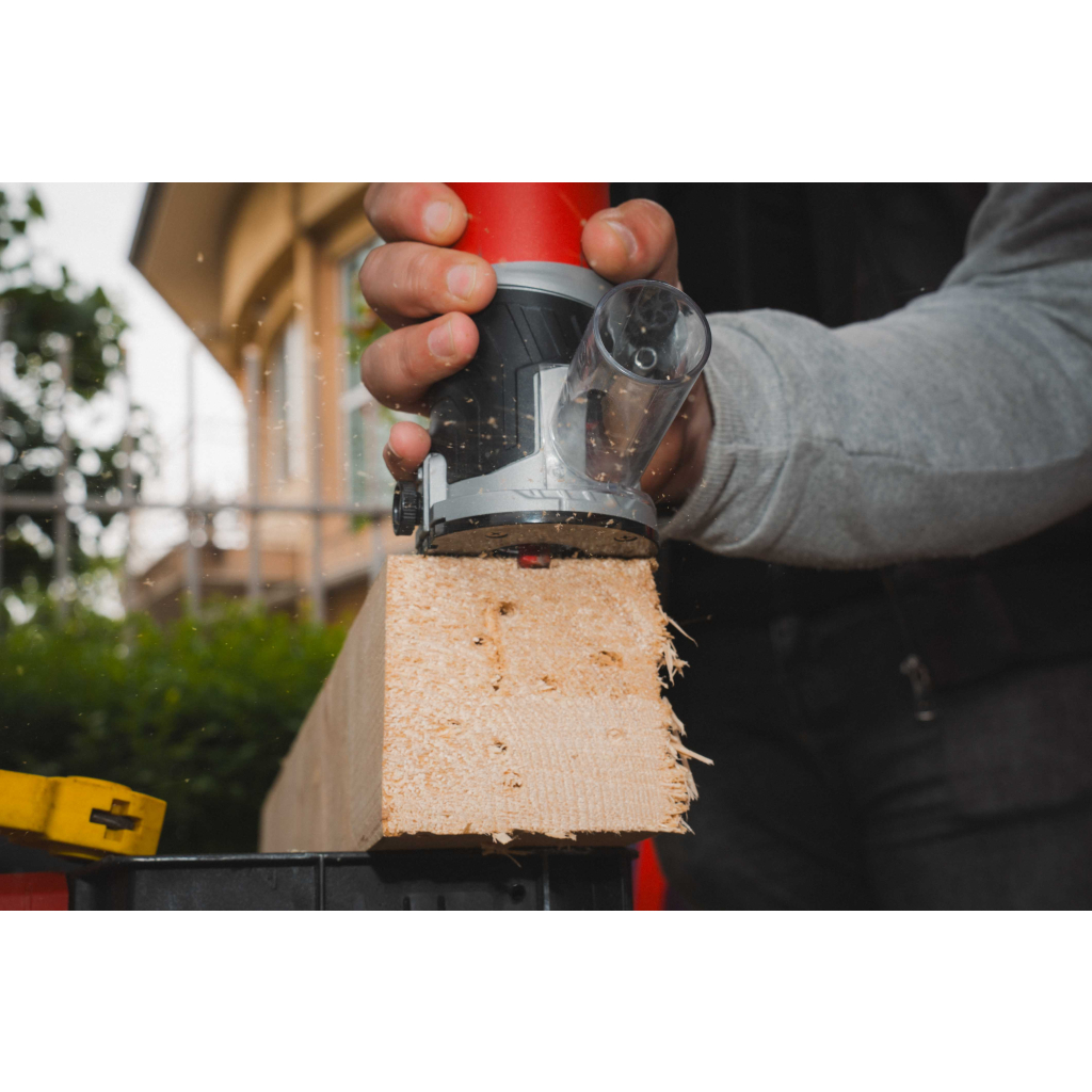 Диапазонът на скоростта от 12 000 до 30 000 оборота в минута позволява прецизно регулиране на скоростта според нуждите на конкретния материал и операция. Това е полезно при работа с различни дървесни материали, пластмаси или други