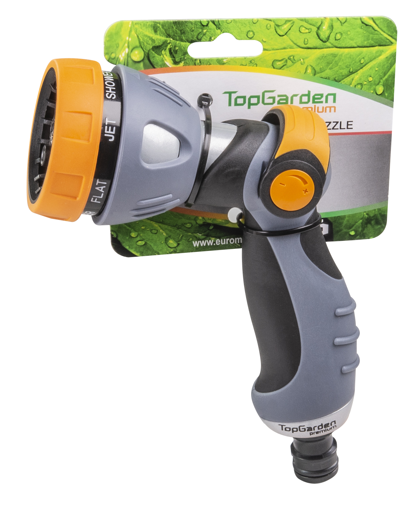 • Снабден е с регулируем накрайник, който осигурява седем режима на поливане