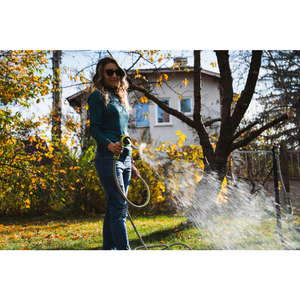 • Поливният пистолет Gardex "TYPHOON TRIGGER" е висококачествен инструмент, предназначен за ефективно поливане и почистване в градината. Той е част от серията "Typhoon", известна с уникалната си функция за завихряне на струята, която позволява над два пъти по-бързо измиване на повърхности в сравнение с конвенционалните пистолети, като същевременно намалява разхода на вода