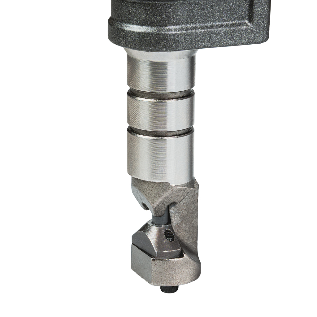 • Нагерът е подходящ както за прави, така и за криволинейни разрези, позволява изрязване на вътрешни отвори и работа с малки радиуси. Минималният радиус на рязане от 45 mm (вътрешен) и 50 mm (външен) дава възможност за изпълнение на сложни форми и детайлни контури, което го прави особено полезен при фина метална обработка.