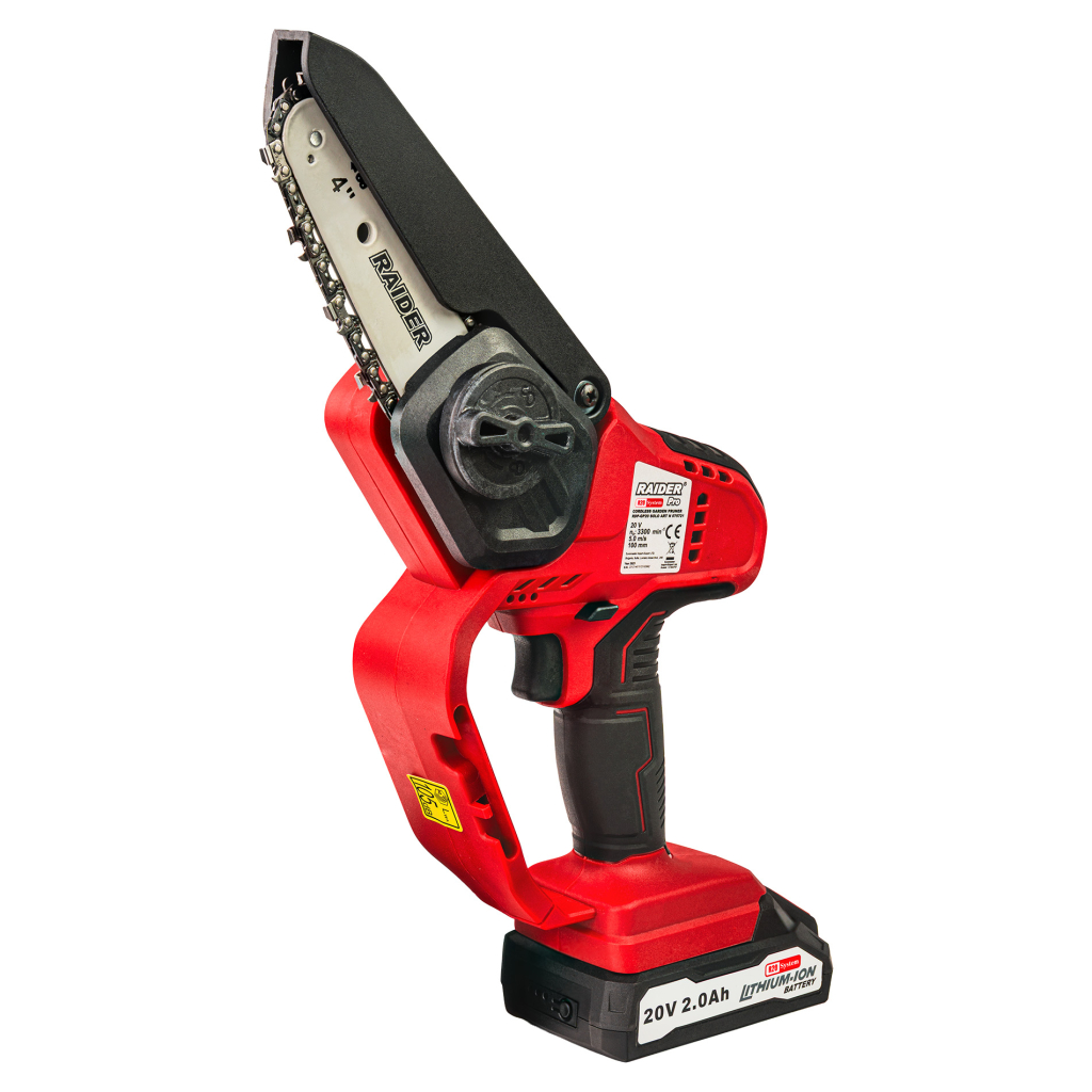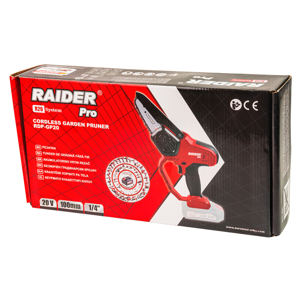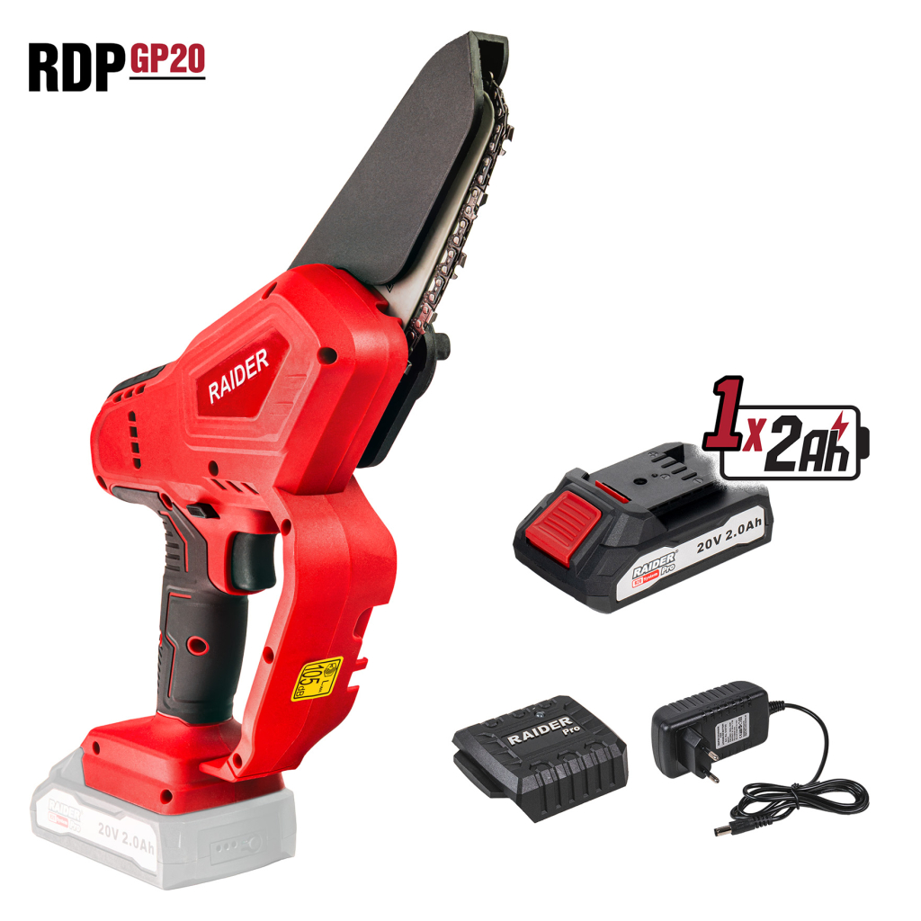 R20 Резачка 100mm (4") 1/4".043" (1.1mm) 28 2Ah RDP-GP20 е част от семейството на "Raider R20 System" и представлява компактна акумулаторна резачка, предназначена за работа с една ръка. Съчетание от удобство, маневреност и надеждна производителност, правят машината идеален избор за поддръжка на градини, кастрене на клони, рязане на дървен материал с малък диаметър, както и за работа на труднодостъпни места.
