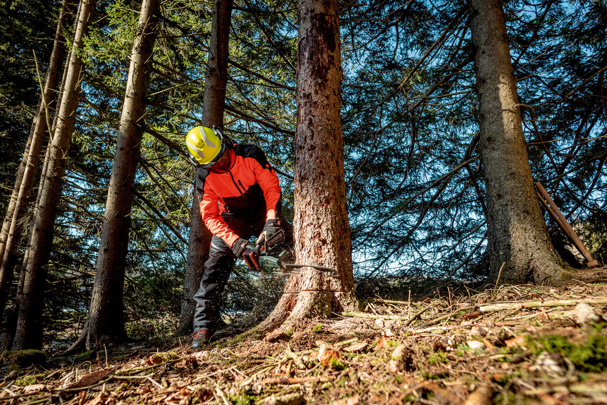 • Мощен акумулаторен верижен трион за бързи и равномерни срезове при сечене, кастрене, разкрояване и строене с дървен материал