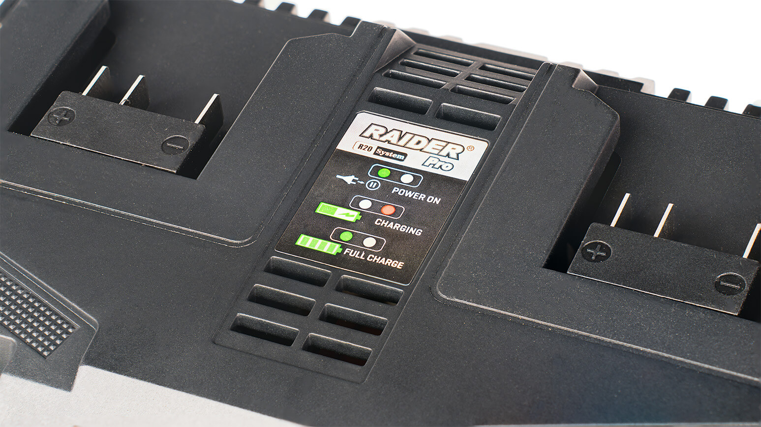 • Двойното зарядно "RDP-R20", може паралелно да зарежда две батери от серията R20 System