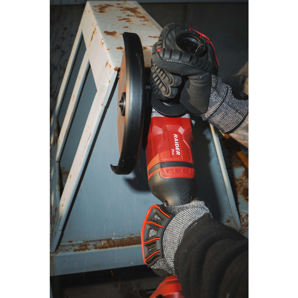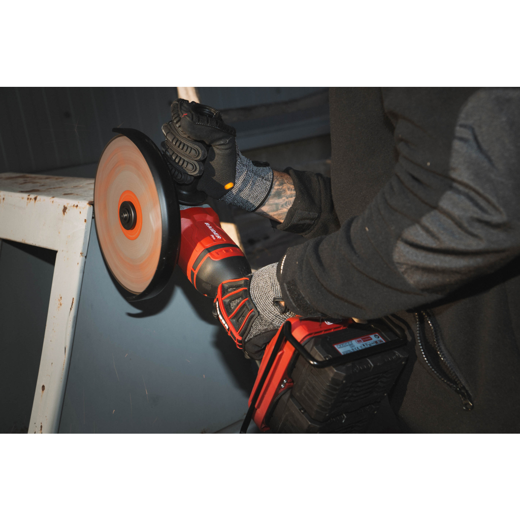 • The angle grinder is part of the Raider R20 family and operates with 2 x 20V batteries, compatible with dozens of other tools from the same series. This simplifies power management, reduces costs, and saves storage space. The batteries are mounted in parallel inside the housing, providing stable 40V power for high performance