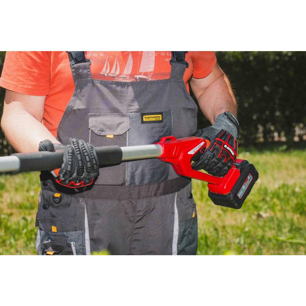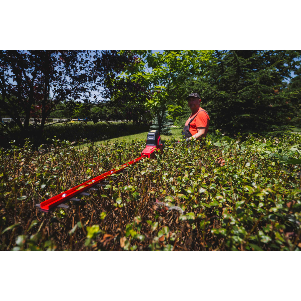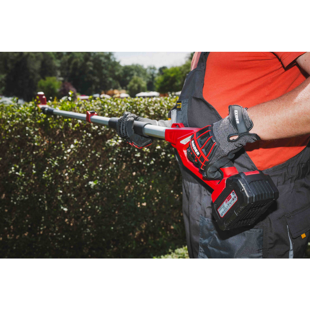 • The hedge trimmer is equipped with a 2Ah lithium-ion battery that provides continuous operation without the need for frequent charging
