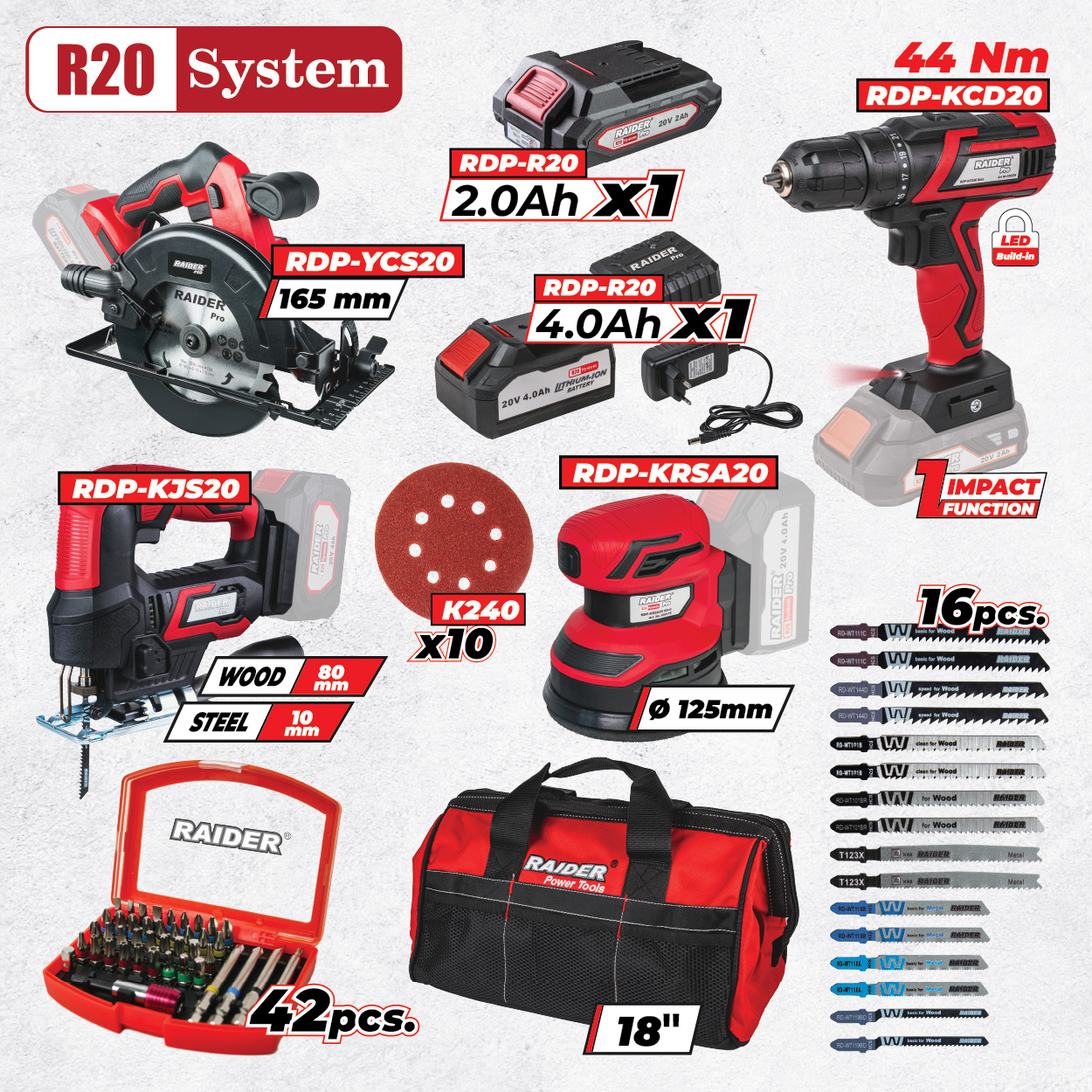 | R20 Cordless Jig Saw quick 80mm Solo RDP-KJS20 | 1 pcs. |