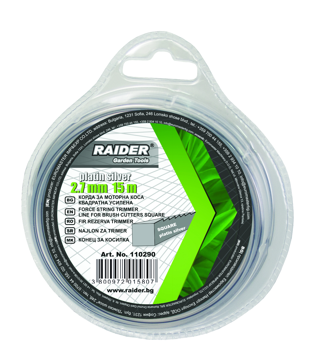 • Square cross-section of the trimmer line with a diameter of Ø2.70mm and a length of 15m