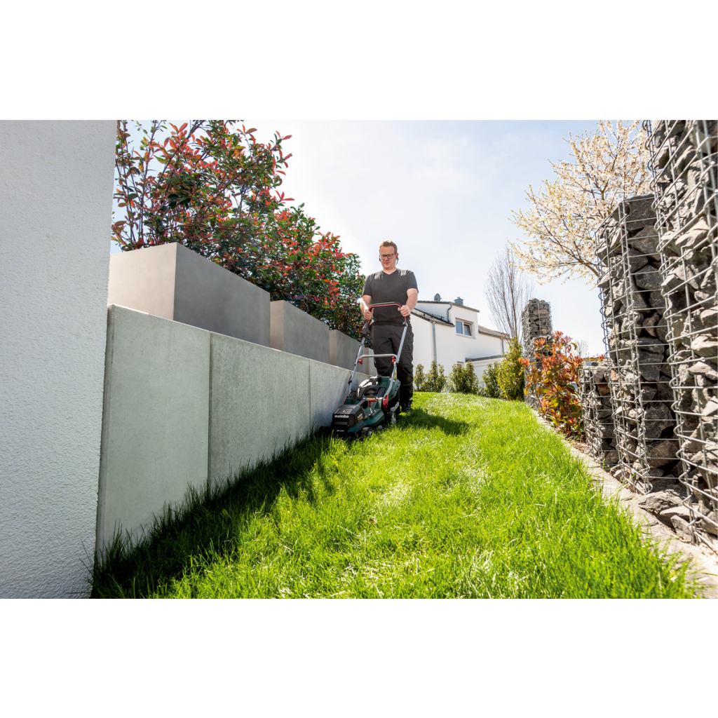 • Compact, mobile cordless lawn mower for mowing and mulching near edges of plots up to 350 m2