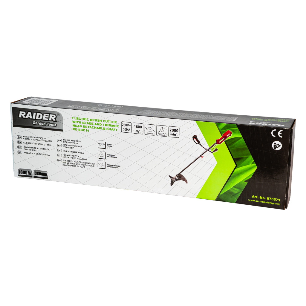 The RD-EBC14 electric brush cutter is a powerful and practical tool with a power output of 1600 W, designed for cutting grass, weeds, and thicker vegetation in yards, gardens, and lawn areas. The model operates with a 230 V power supply and 50 Hz frequency, making it suitable for standard electrical networks.