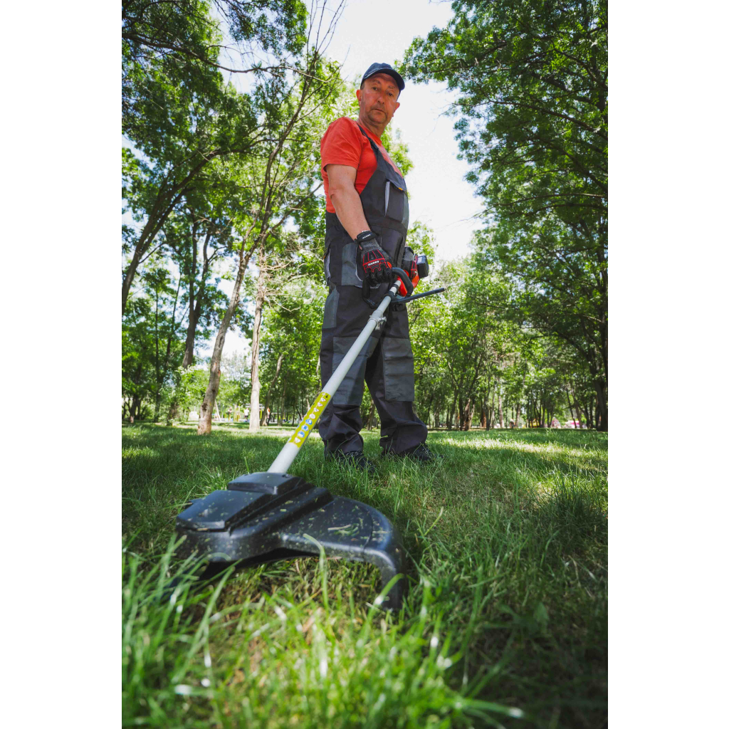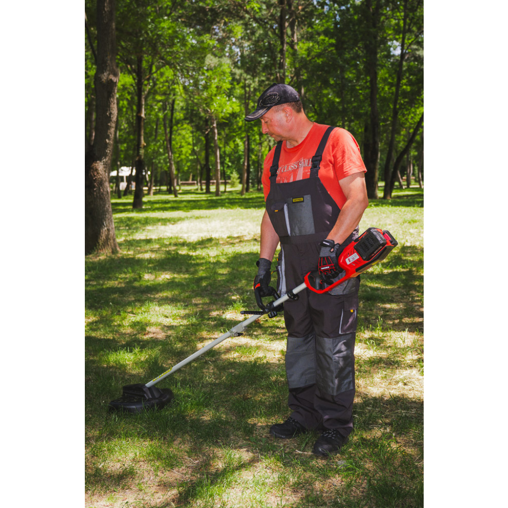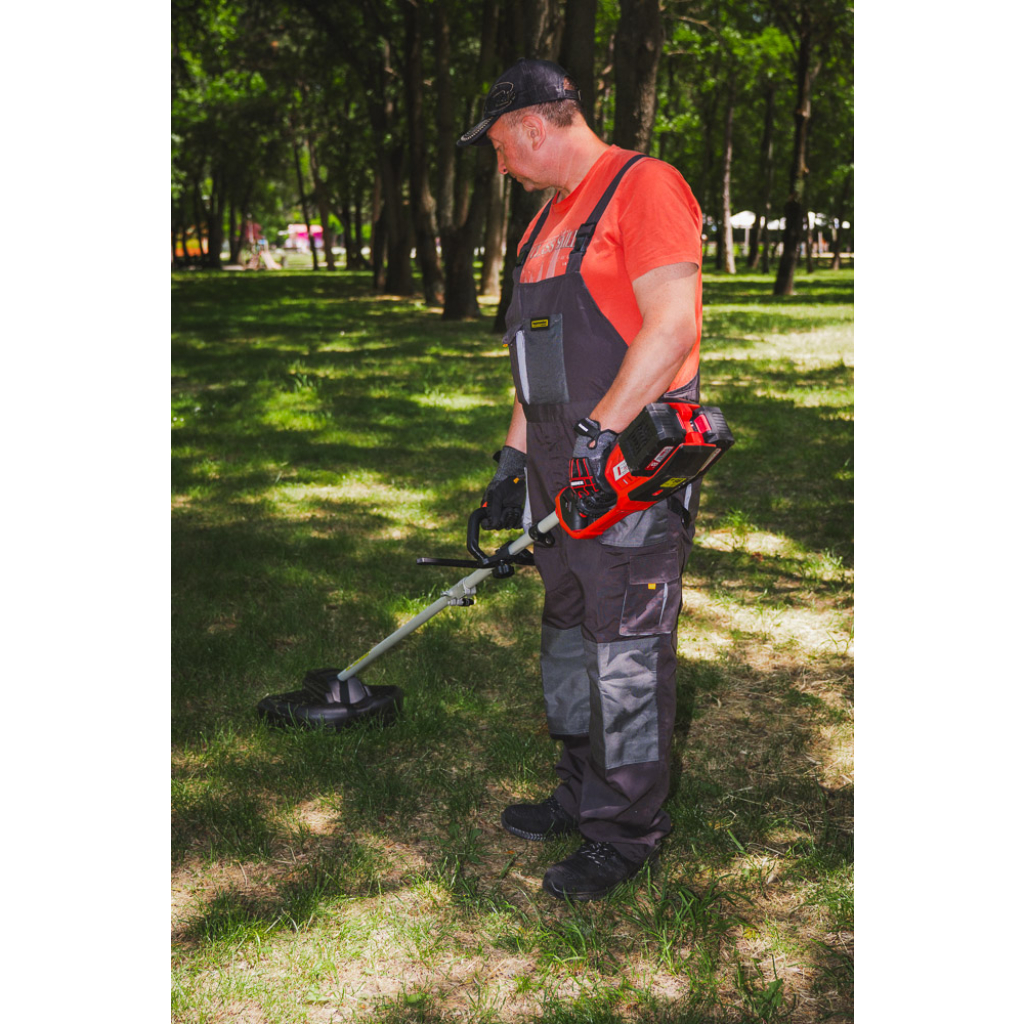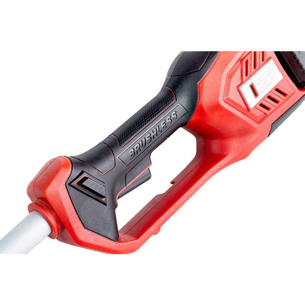 • "R20" brushless trimmer is a powerful and convenient tool for garden maintenance. It has a special design that ensures easy and comfortable operation. The machine is equipped with a knife and a cord that allow the user to choose the appropriate method for trimming the grass