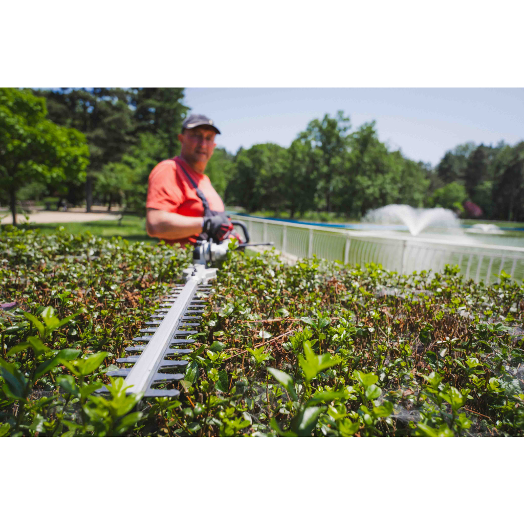• The machine can be used as a grass cutter with a blade and cord, which allows easy and quick maintenance of lawns. The hedge trimmer is ideal for trimming shrubs and hedges, providing a precise and clean cut. The branch cutter is perfect for pruning trees and shrubs, which promotes healthy plant growth.