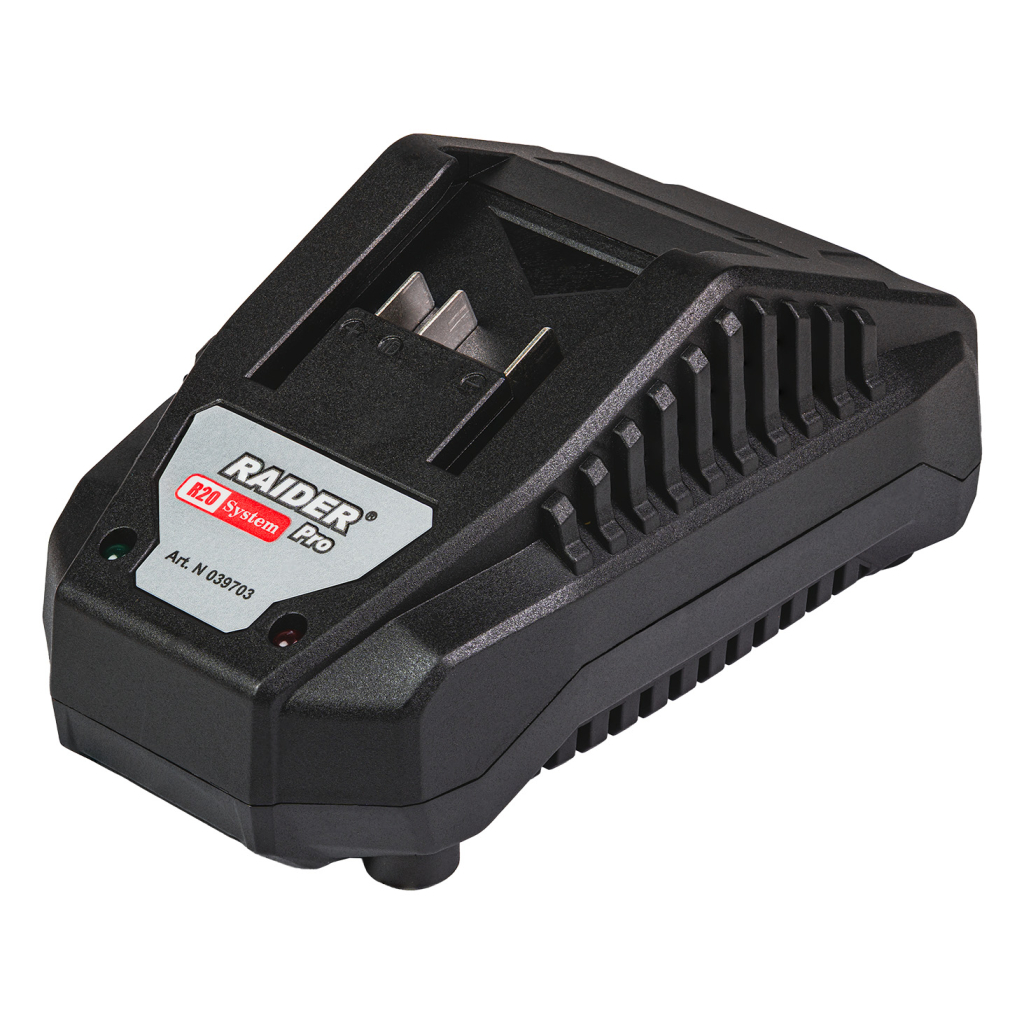 The model is part of the Raider R20 System cordless family, allowing the same battery to be used across all R20 series tools. The machine is compatible with different battery capacities from the R20 range, offering flexibility, cost optimization, and extended runtime. The set includes a 4Ah battery and a durable carrying case for convenient storage and transport.
