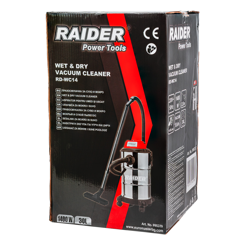 Прахосмукачката за сухо и мокро почистване RD-WC14 is a highly efficient and versatile device designed to meet the needs of both demanding home users and professionals working in service centers, workshops, production facilities, warehouses, garages, and construction sites. Thanks to its powerful 1400 W electric motor, it provides stable and reliable suction power, enabling fast and thorough cleaning of dry debris such as dust, wood shavings, metal particles, and construction waste, as well as liquids, spills, and more.