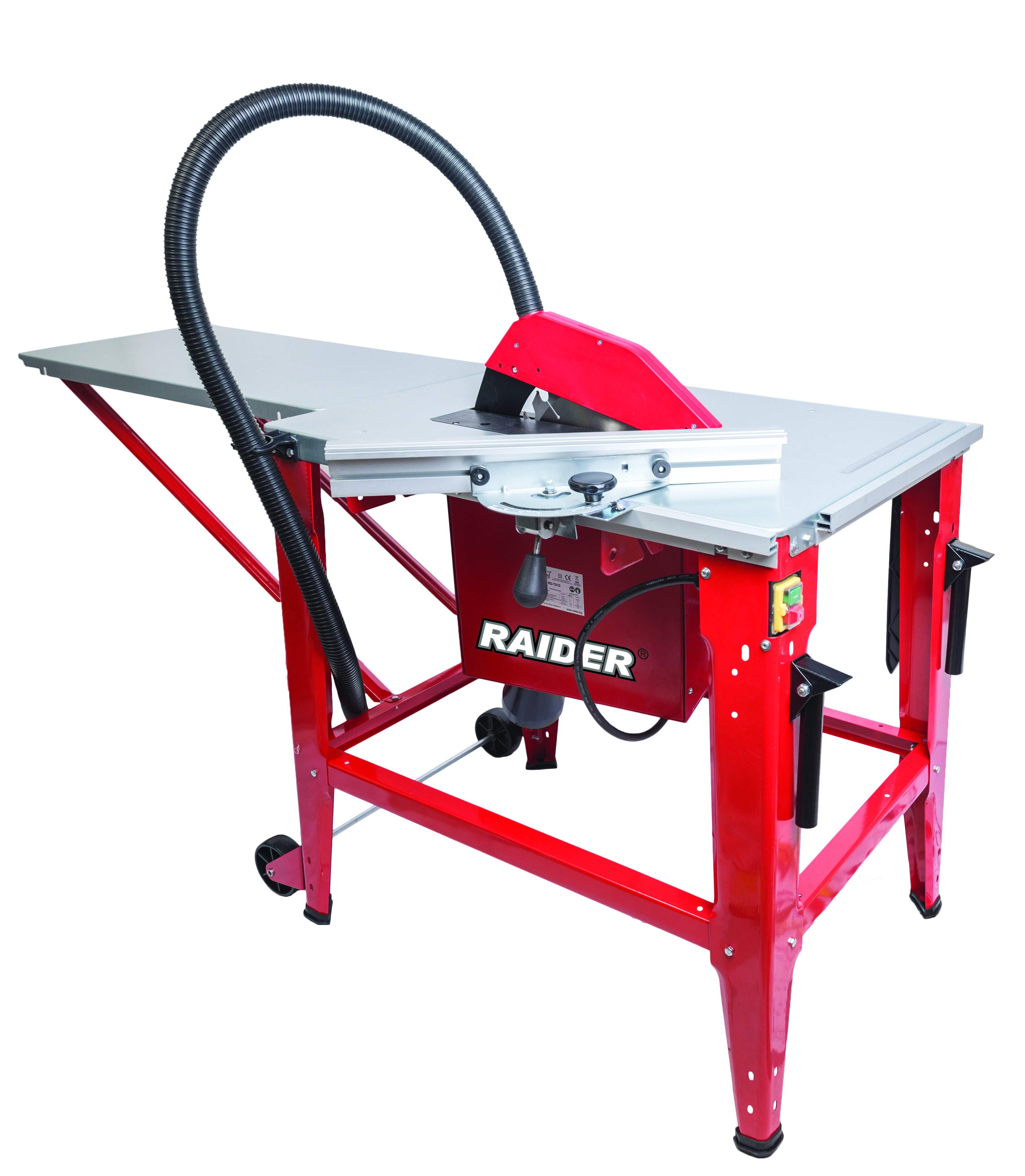 Table saw RD-TS10 is ideal for cutting beams, boards. It has a folding hob extension, a lightly movable corner limiter, and a stable parallel limiter. Sturdy and solid steel construction combined with galvanized worktop. Easy tilt adjustment of the disc and connection to aspiration.