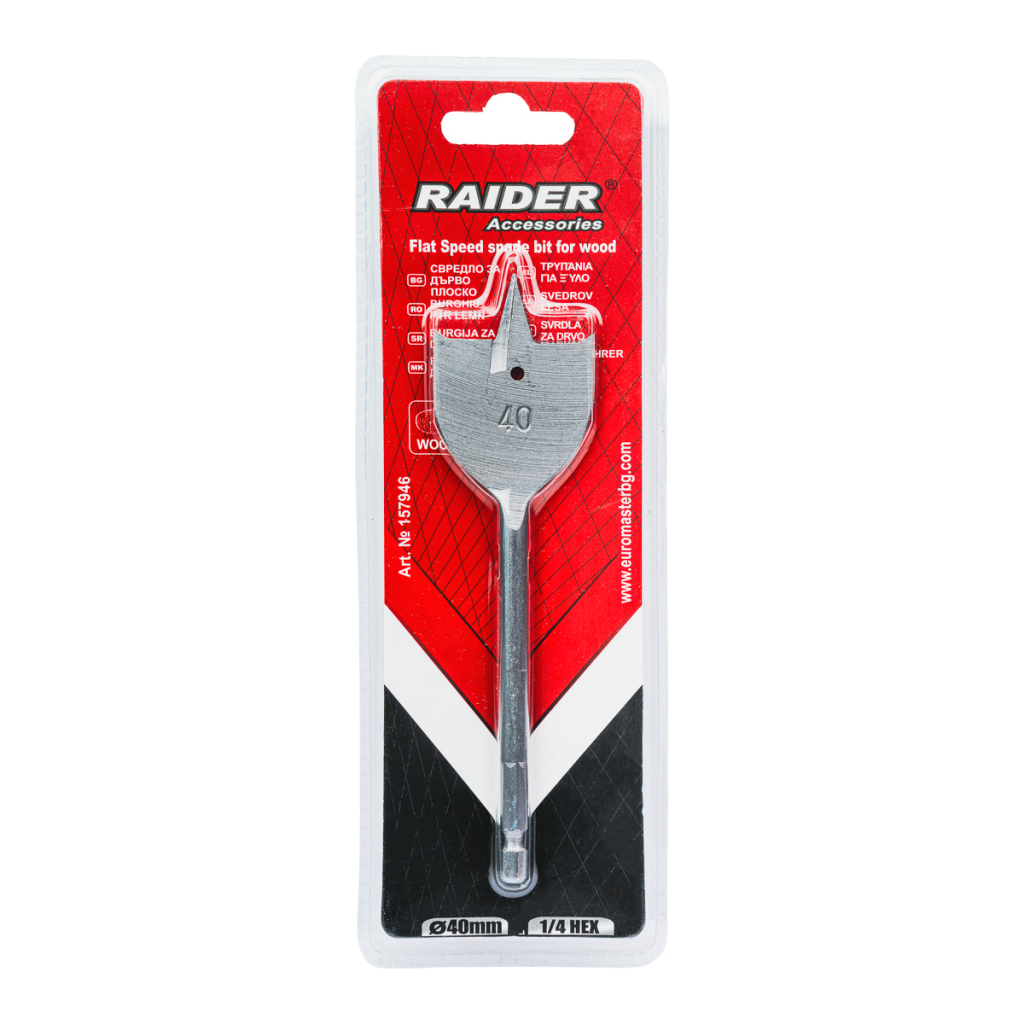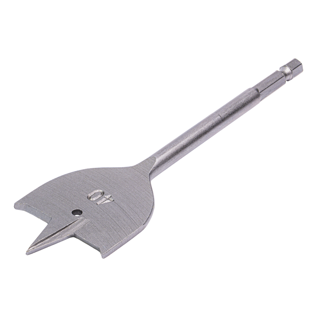 The series of flat wood drill bits with 1/4" HEX shank is designed to provide efficient, fast, and precise drilling of holes with various diameters in a wide range of wood materials. Covering sizes from Ø18 mm to Ø55 mm, these drill bits offer flexibility for a variety of applications – from standard mounting holes to drilling large through-holes for installations.