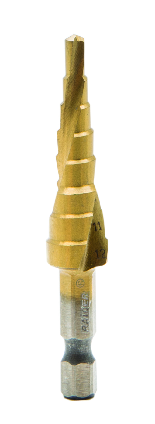 Step Drill Bit Hex Shank 1/4" HSS+TIN spiral flute Ø4-12mm |