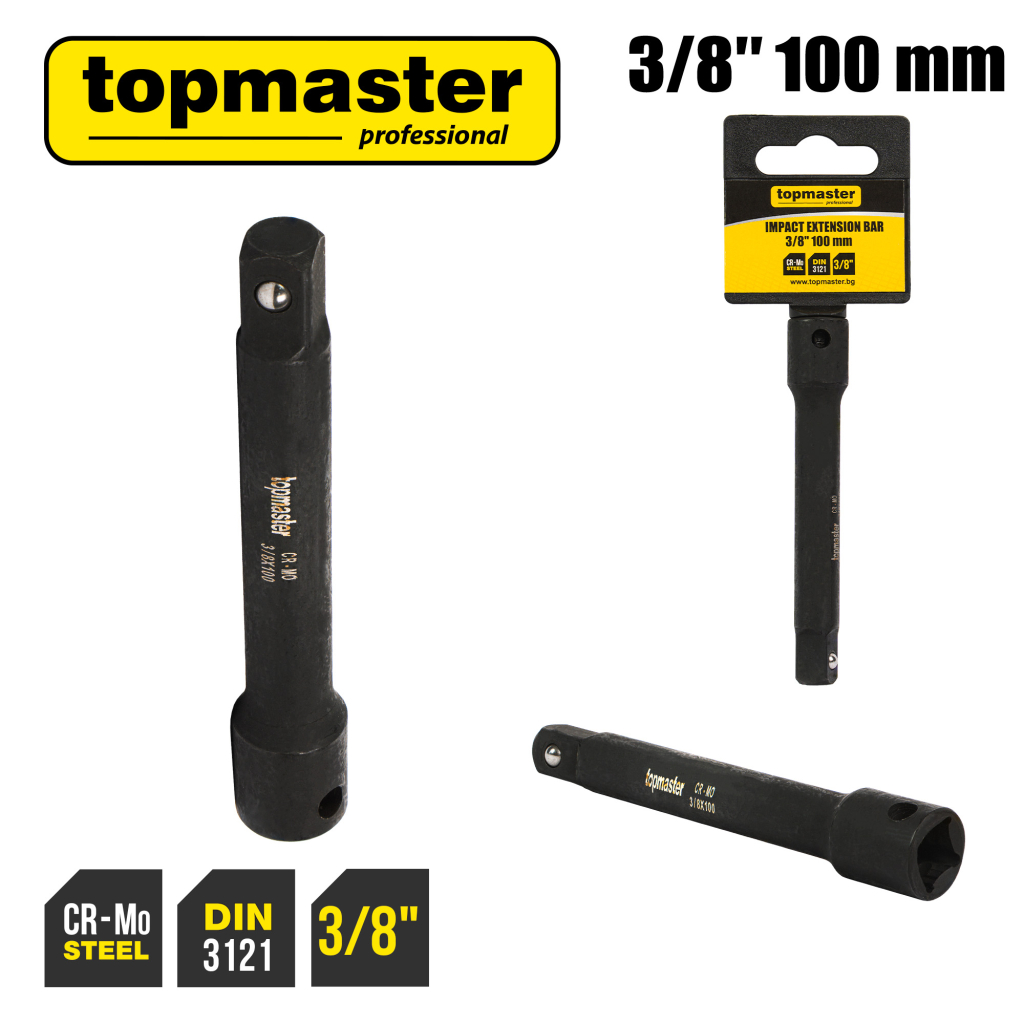 • TMP 3/8" – 100 mm impact extension, Cr-Mo steel, DIN 3121.