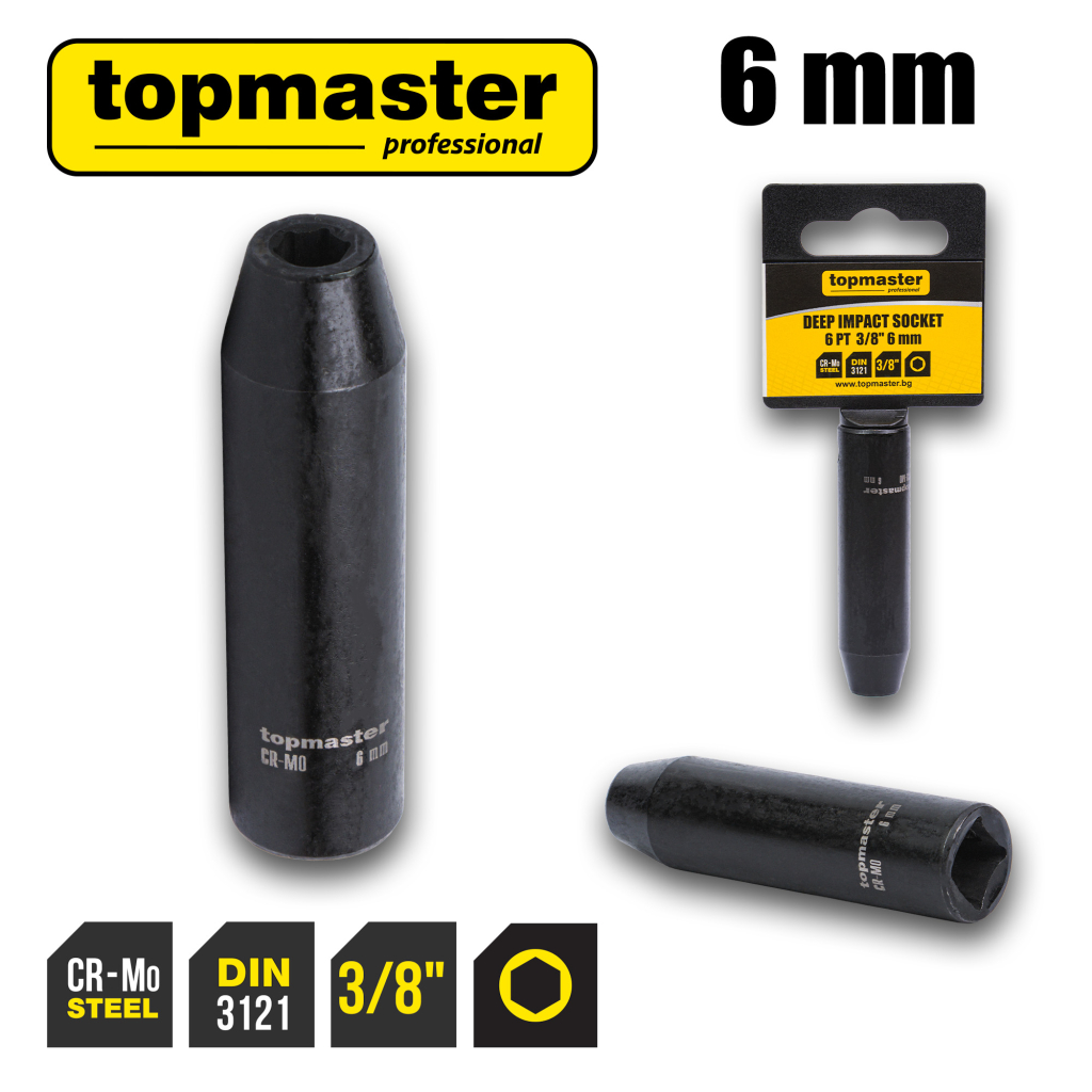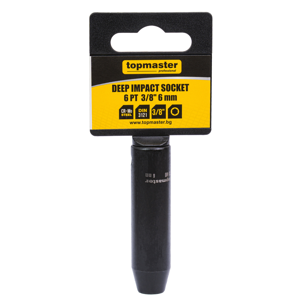 The extended impact socket is made of high-quality chrome-molybdenum steel (Cr-Mo), offering exceptional strength, resistance to impact loads, and long-lasting performance for intensive professional use.
