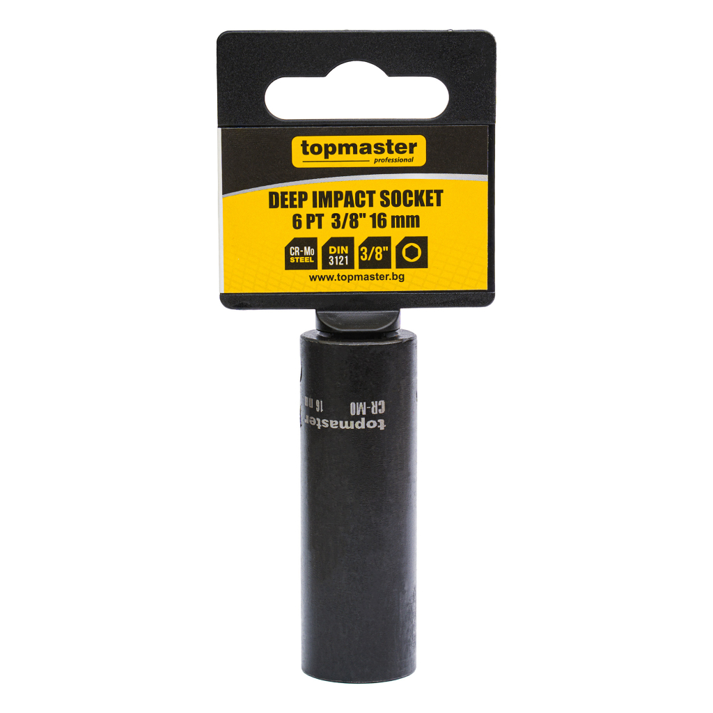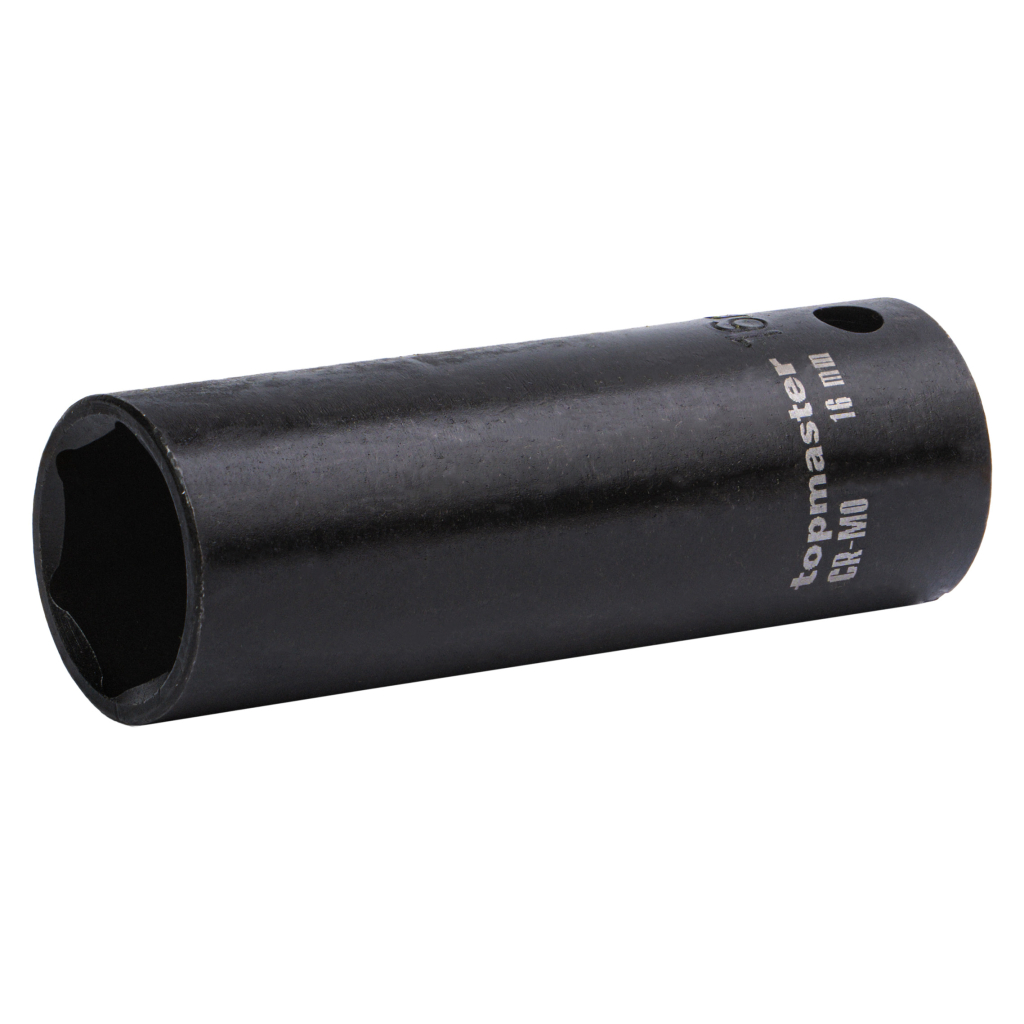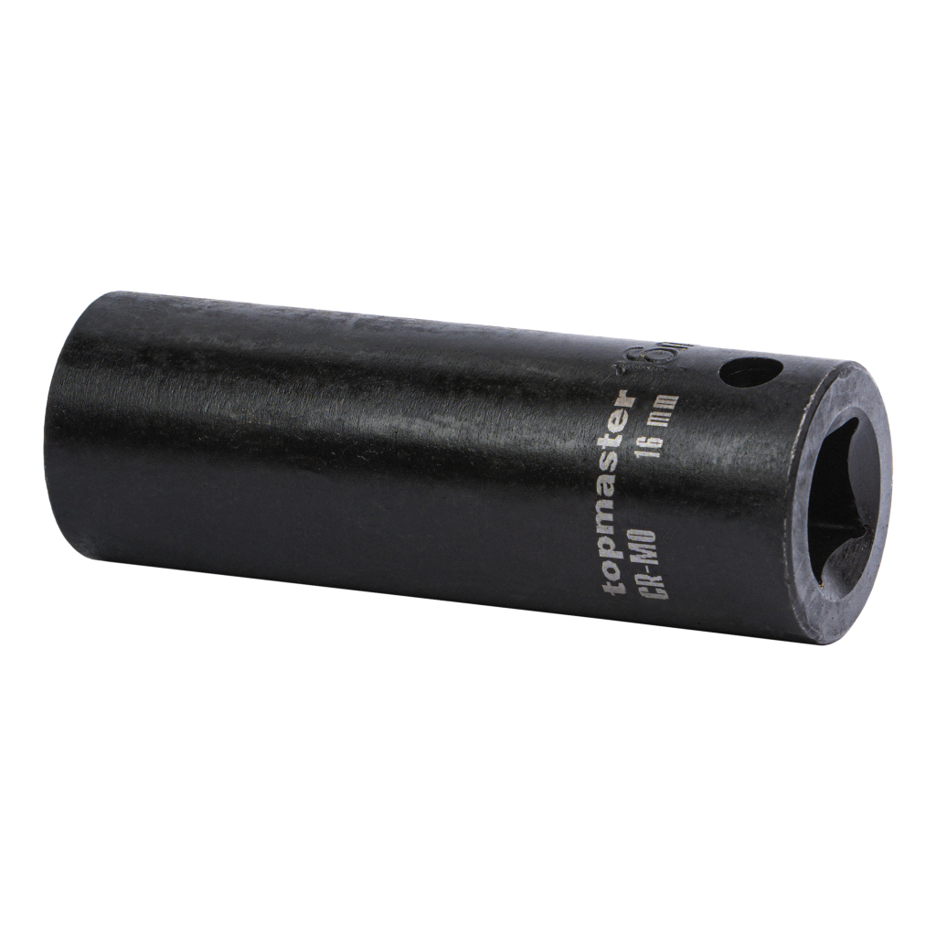 The extended impact socket is made of high-quality chrome-molybdenum steel (Cr-Mo), offering exceptional strength, resistance to impact loads, and long-lasting performance for intensive professional use.
