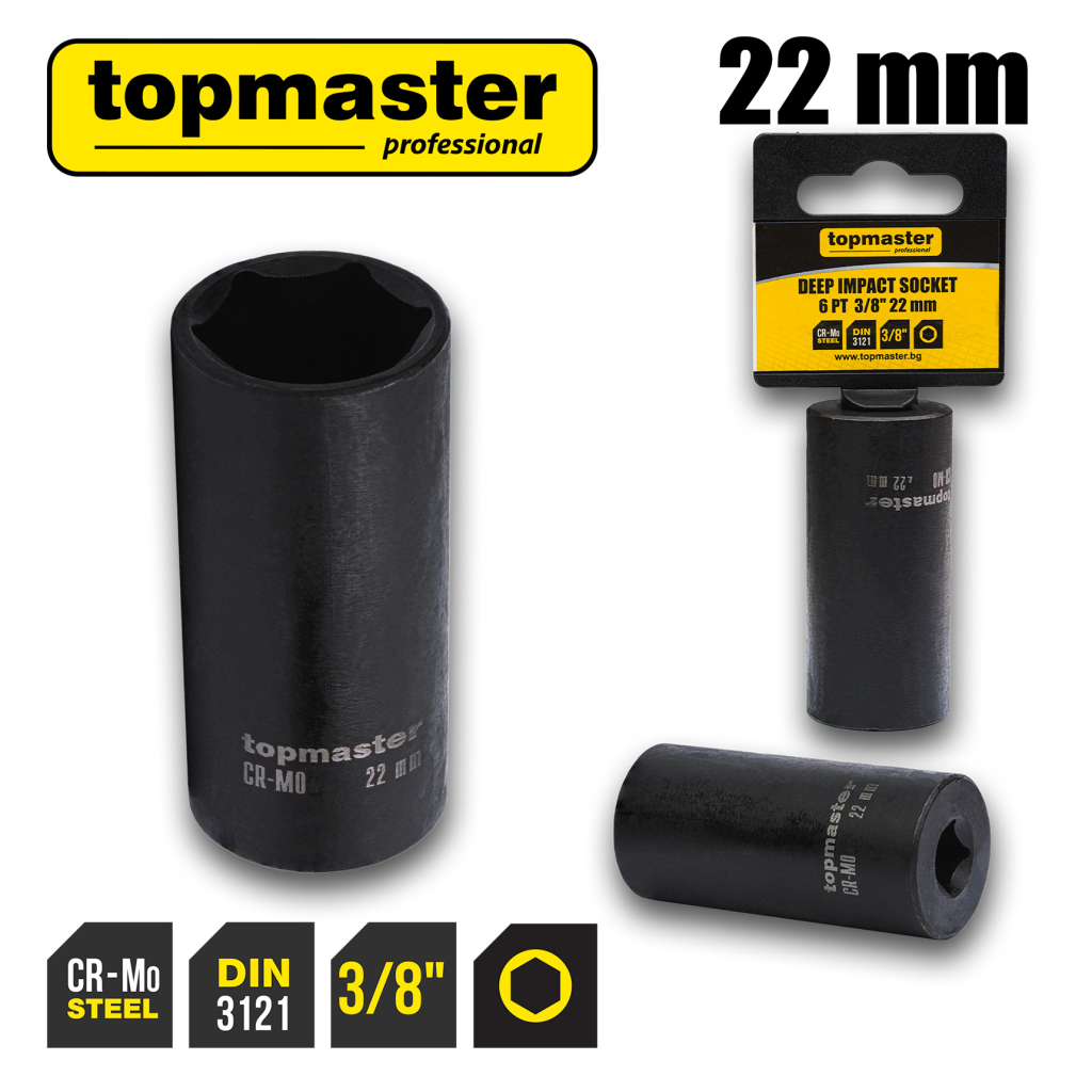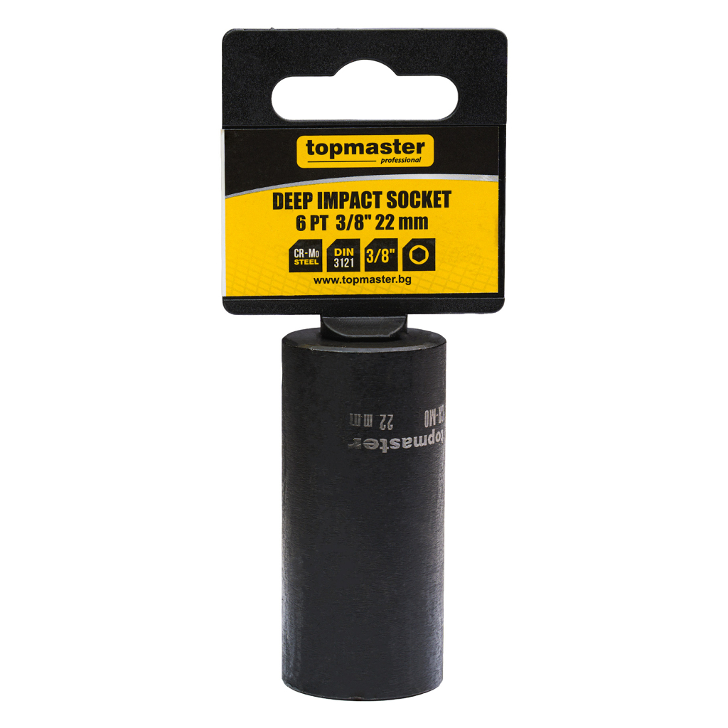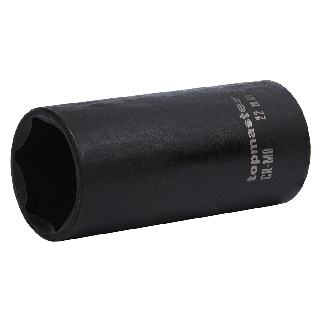 The extended impact socket is made of high-quality chrome-molybdenum steel (Cr-Mo), offering exceptional strength, resistance to impact loads, and long-lasting performance for intensive professional use.