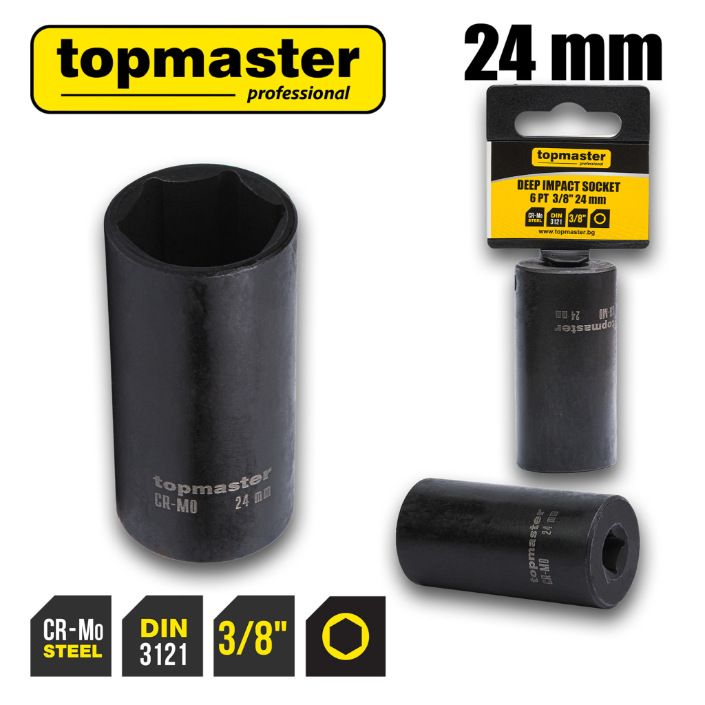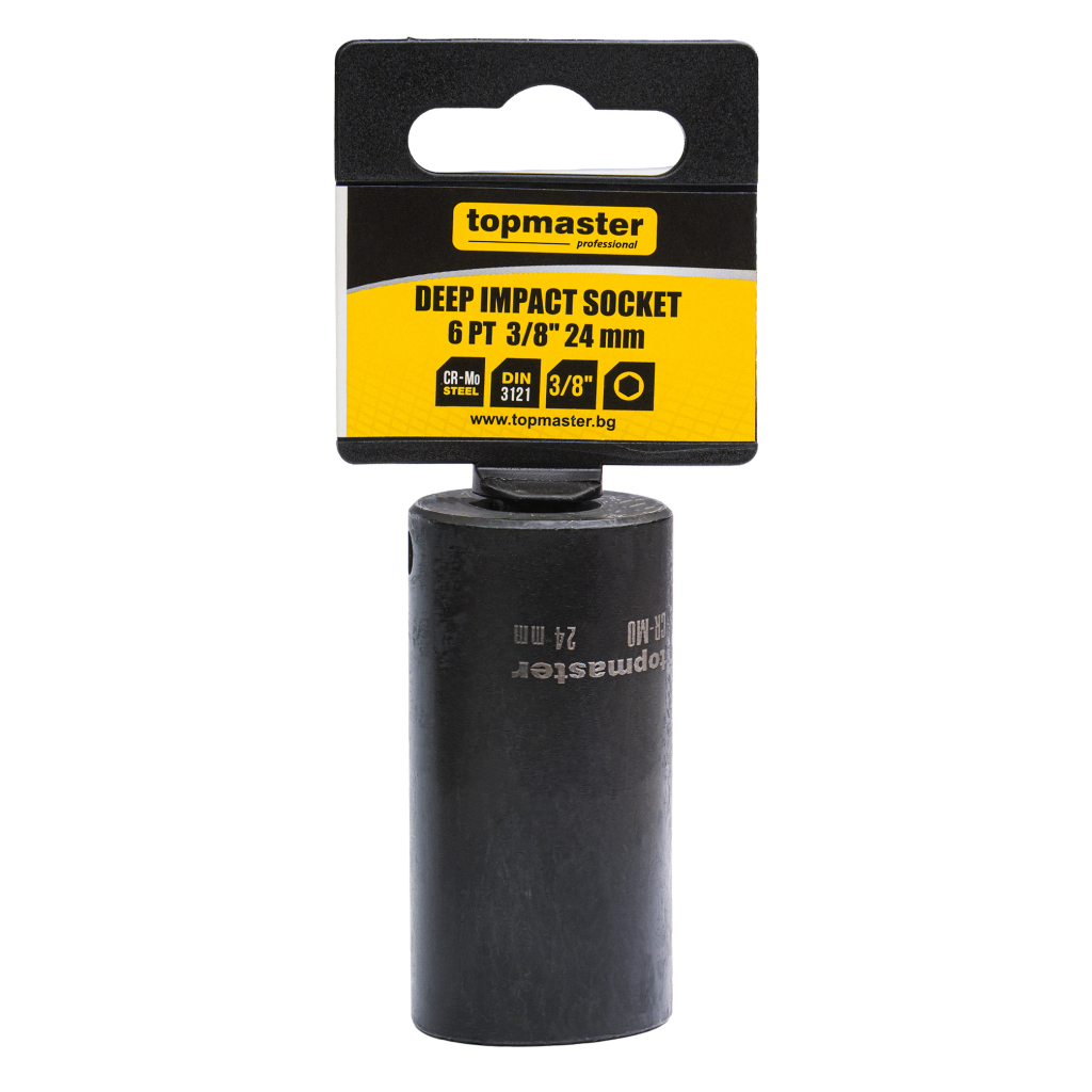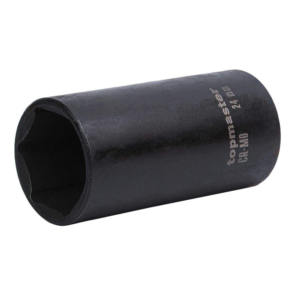 The extended impact socket is made of high-quality chrome-molybdenum steel (Cr-Mo), offering exceptional strength, resistance to impact loads, and long-lasting performance for intensive professional use.