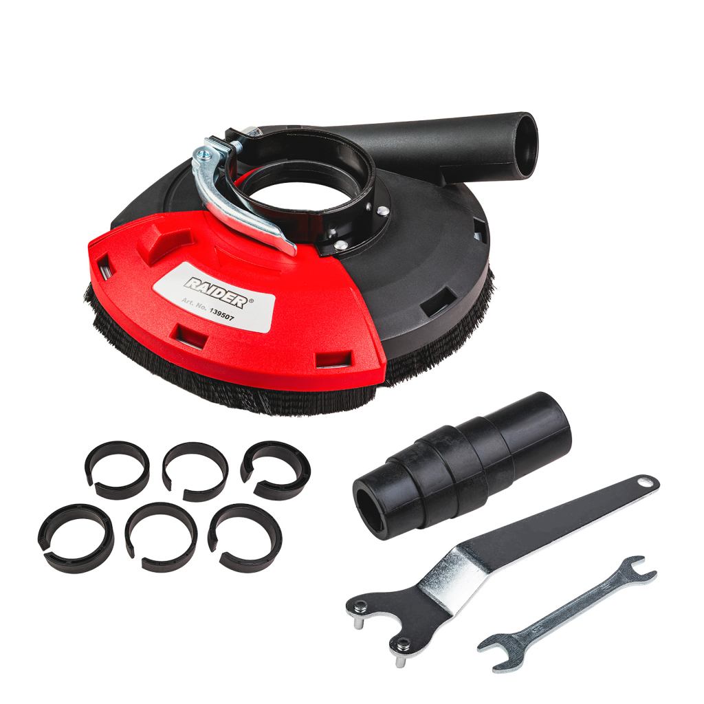 Bara de protectie pentru extractia prafului este un accesoriu special conceput pentru utilizarea cu polizoare unghiulare echipate cu disc de 180 mm. Aceasta colecteaza si directioneaza eficient praful generat in timpul slefuirii, taierii sau curatarii suprafetelor din metal, lemn sau materiale compozite. Accesoriul imbunatateste semnificativ siguranta la locul de munca si mentine vizibilitatea asupra zonei de lucru, protejand operatorul si unealta de particulele de praf.