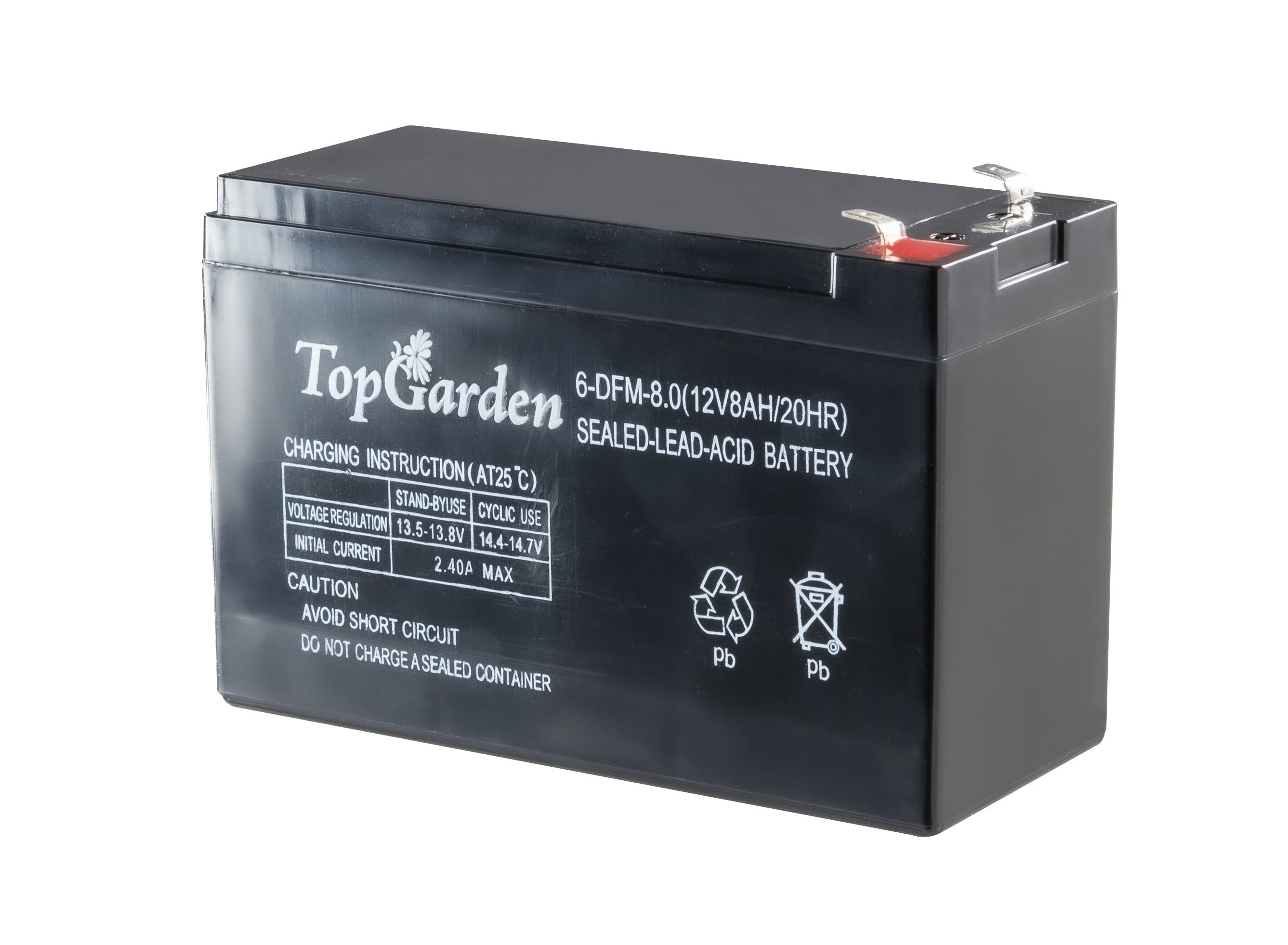 Baterie plumb acid 12V/8Ah de la TopGarden pentru pulverizatoarele cu acumulator. Cu o singura incarcare a acumulatorului, puteti pulveriza pana la 3-4 ore.