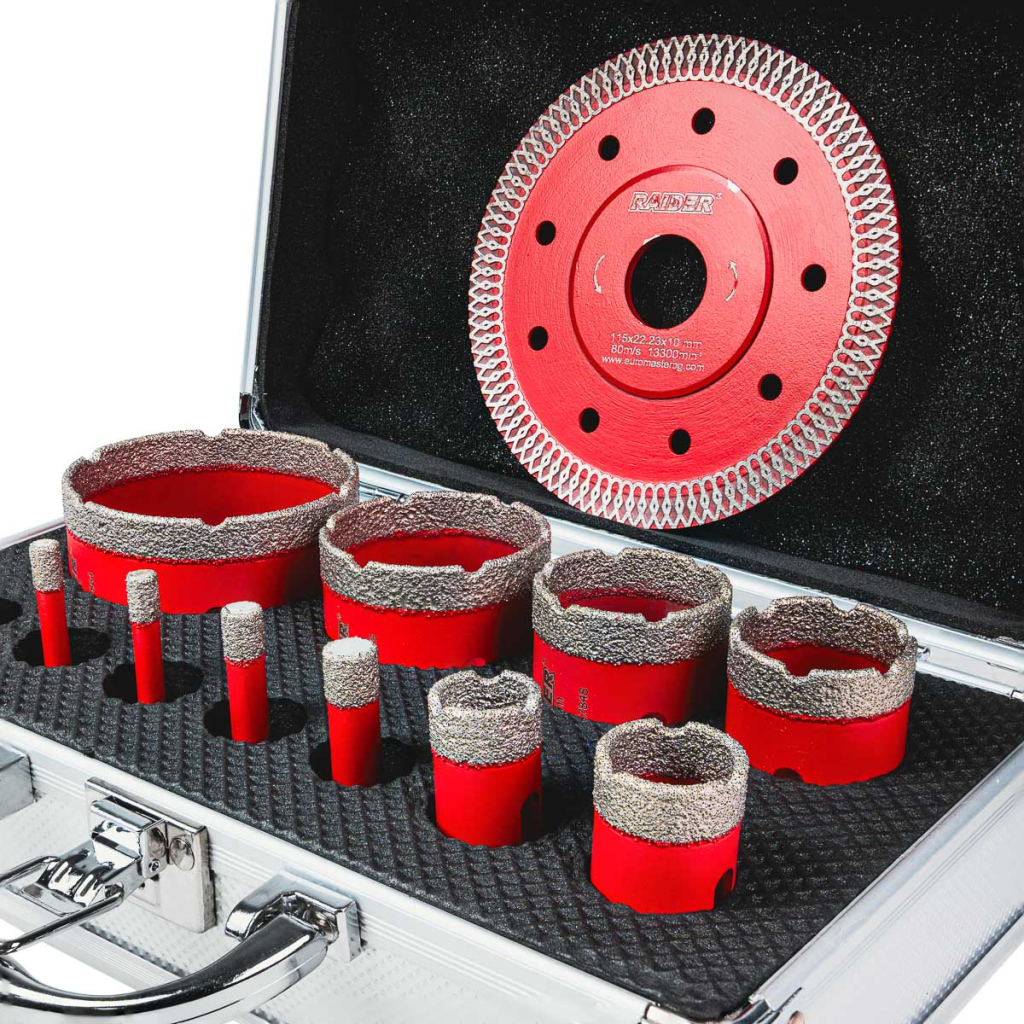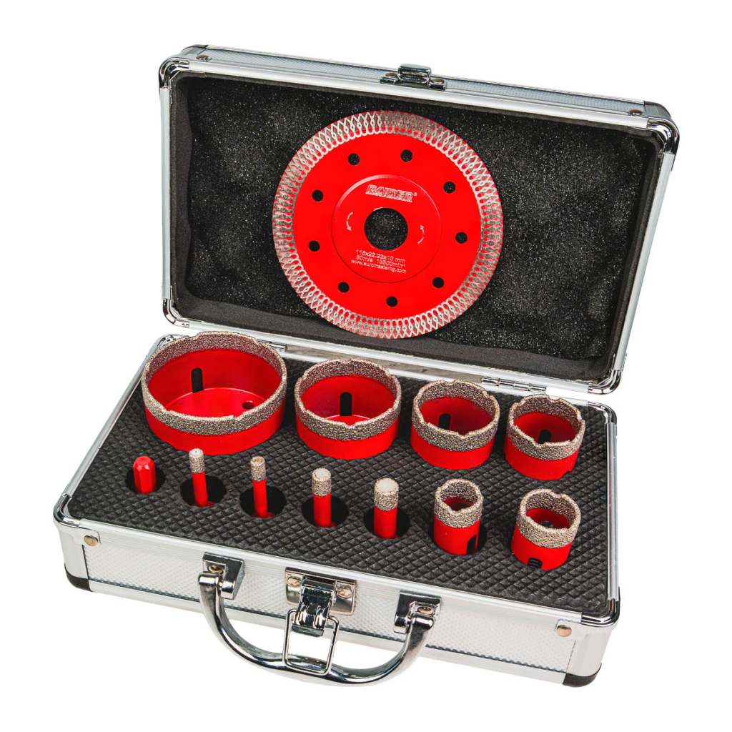 • Боркороните са с висококачествено диамантено покритие, което гарантира изключителна издръжливост и бързо проникване в твърди повърхности като керамика, гранитогрес, мрамор и бетон. Тази технология значително намалява износването и повишава ефективността при пробиване.
