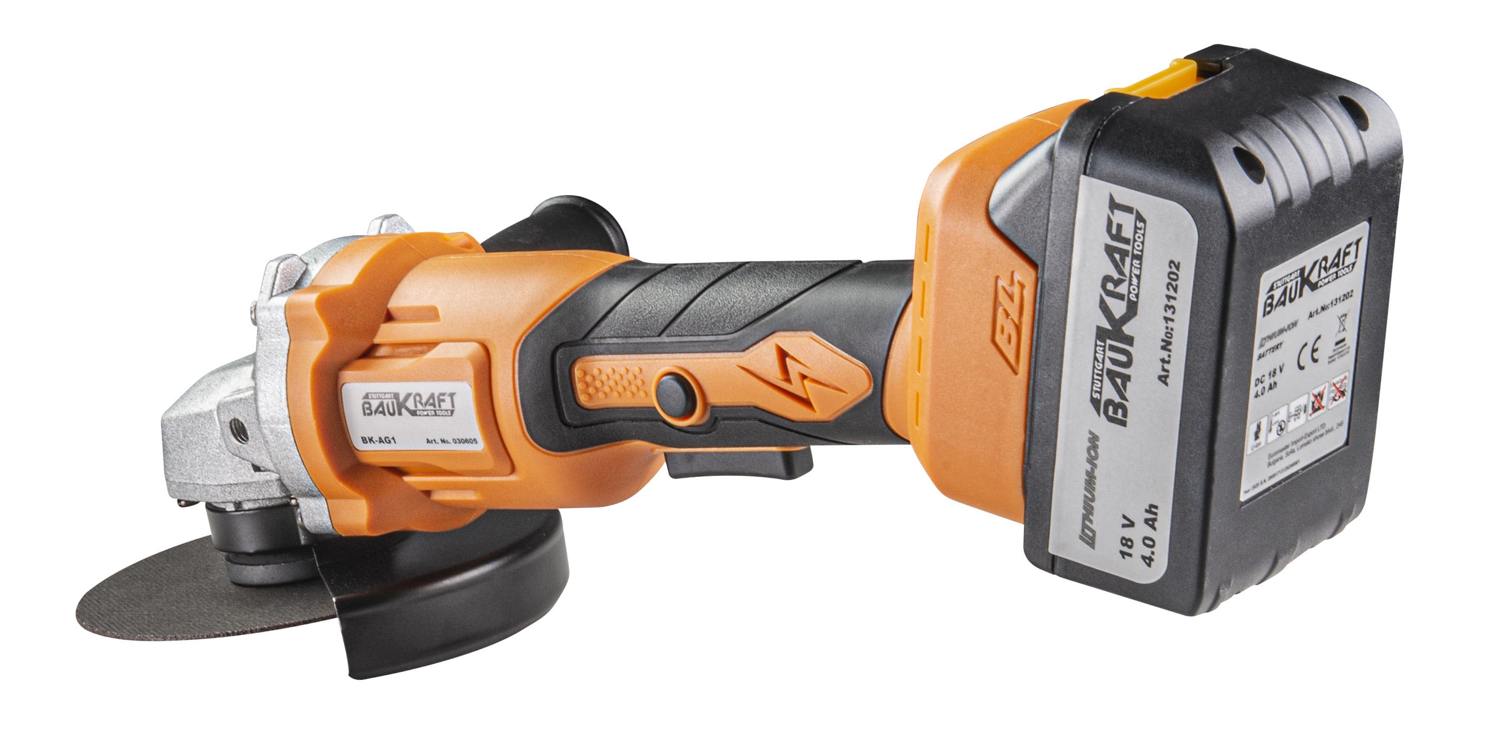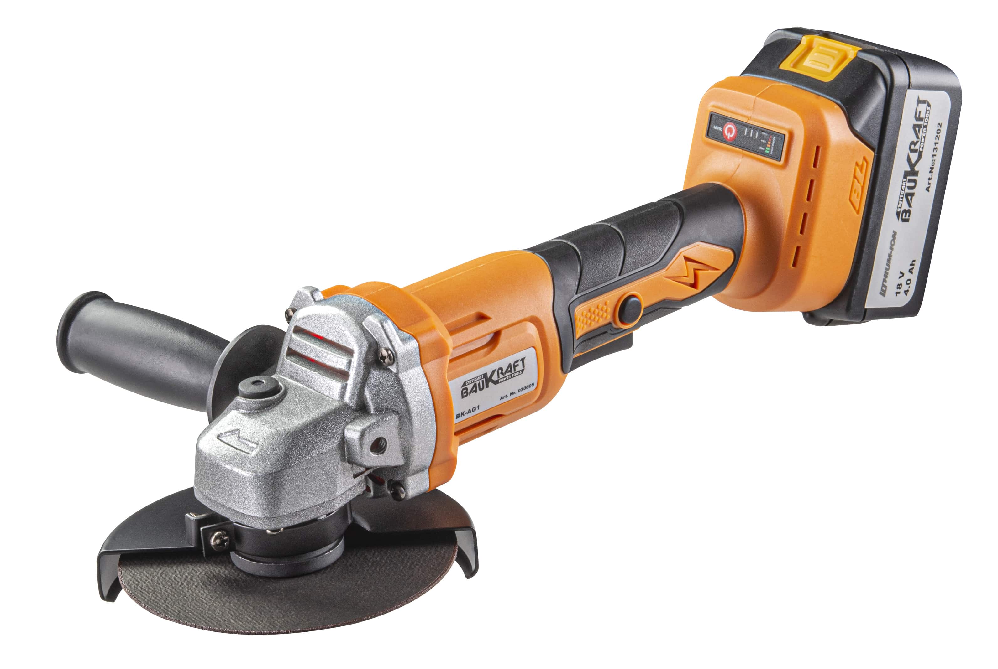 Polizorul unghiular este echipat cu un motor fără perii care oferă o eficiență cu peste 80% mai mare. Acest factor este extrem de important pentru uneltele fără fir, deoarece permite o funcționare mai lungă cu până la 30% la o singură încărcare a bateriei. Diametrul discului este de 125 mm. Are un indicator pentru viteza si nivelul bateriei. Încărcătorul de 18 V este compatibil cu bateriile Baukraft litiu-ion.