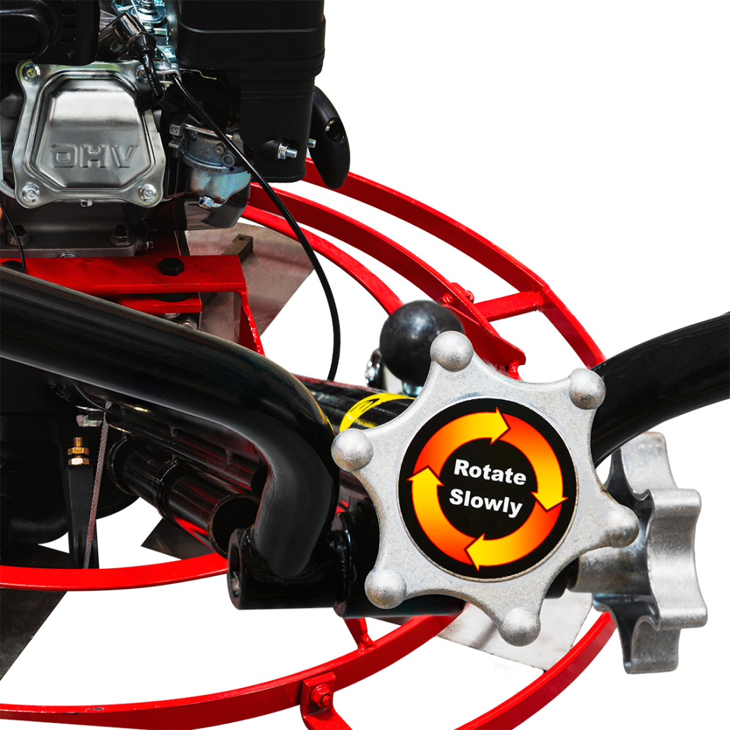 • С диаметър на въртене 920 mm и скорост от 60 до 100 min⁻¹, RAIDER RDP-GPT01 обработва бързо и равномерно големи площи, като осигурява контрол и прецизност на всяка фаза – от първично уплътняване до финално заглаждане. Машината разполага с 4 лопатки, чийто ъгъл на работа е регулируем от 0 до 15 градуса, позволявайки оптимално адаптиране към състоянието на бетона и желаната гладкост на повърхността.