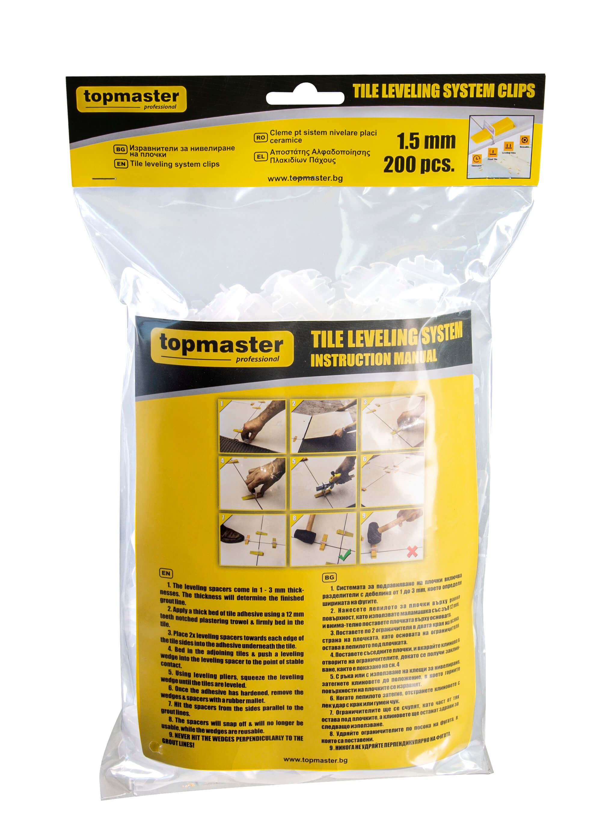 • Тези изравнители (скоби) са част от системата за нивелиране на плочки на Topmaster