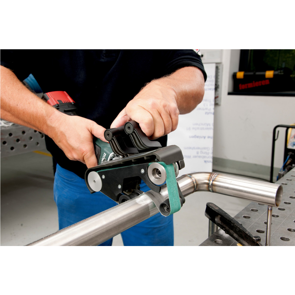 • Компактен акумулаторен лентов шлайф за бързо и универсално обработване на тръби от INOX