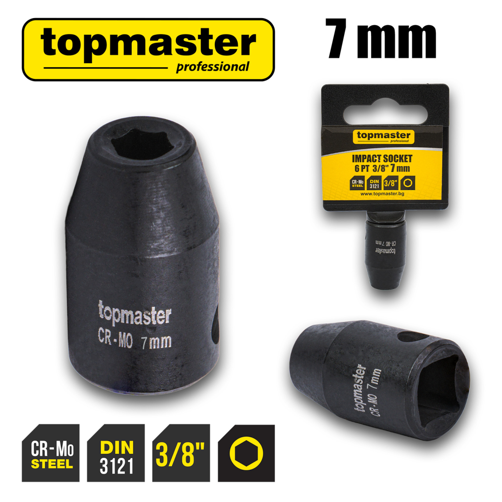 • Вложката 7 mm е подходяща за малки до средни крепежи и често се използва в автомобилни и машинни възли.